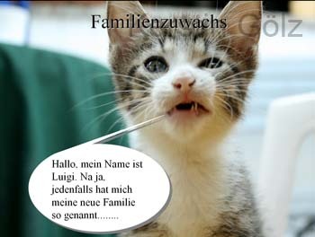 Mitte April 2008 verschwand Luigi plötzlich spurlos. All unsere Bemühungen, wie in der näheren Umgebung angebrachte Suchmeldungen, Besuche von Tierstationen und Tierärzten und Anrufe bei der Feuerwehr blieben leider erfolglos. Wir trauern um ihn und werden ihn nicht vergessen...