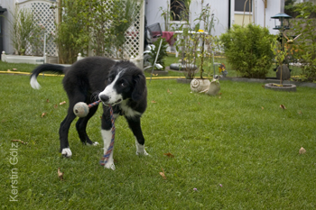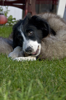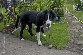 Am 19. April 2009 um 21:09 erblickte mit 307g in Panketal ein Border Collie das Licht der Welt. Wir holten ihn am 24. Juli ab und tauften ihn auf den Namen Chucky. Unsicher betrachtet er seine neue Umgebung.